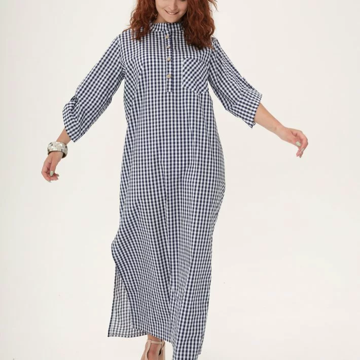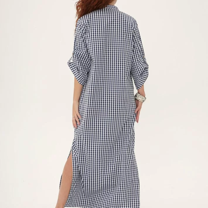 Довга пряма сукня-сорочка, з класичним рукавом 3/4 на хлястику і