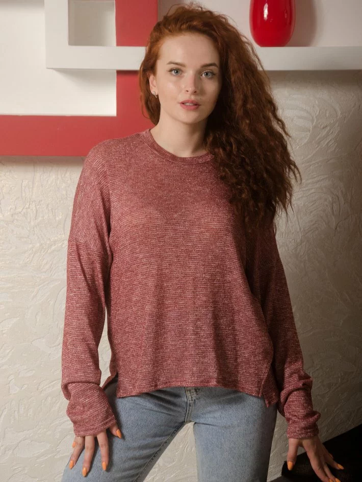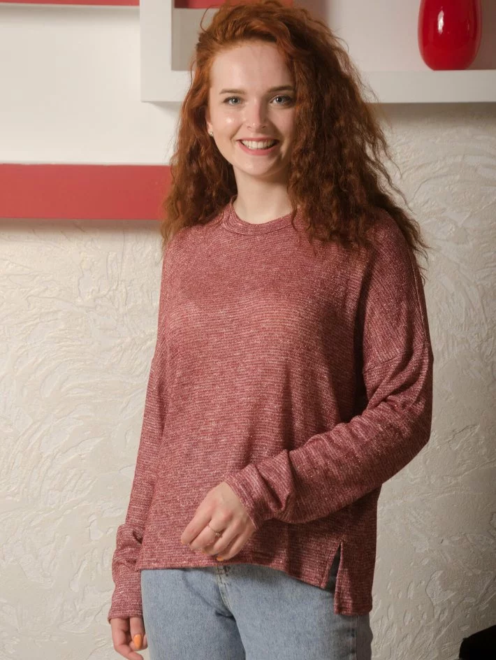 Кофта зі спущеною лінією плеча та оригінальним боковим швом з