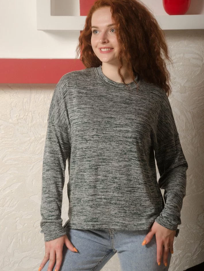 Кофта зі спущеною лінією плеча та оригінальним боковим швом з