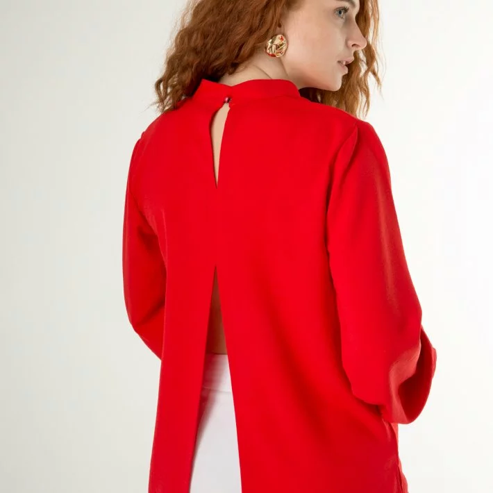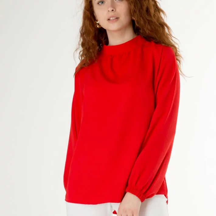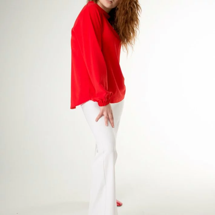 Червона класична блуза з жатки 230152-1, 48/50 (230152-1s4850)