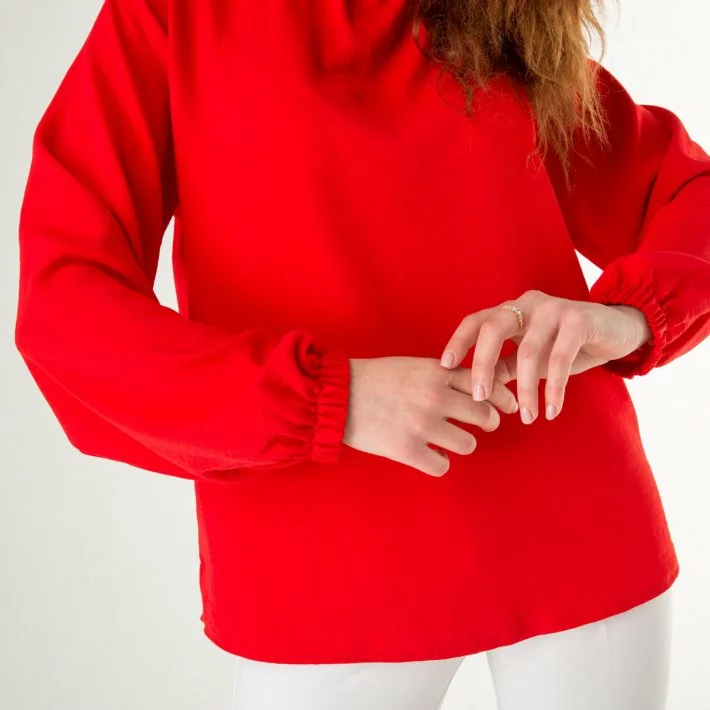 Червона класична блуза з жатки 230152-1, 48/50 (230152-1s4850)