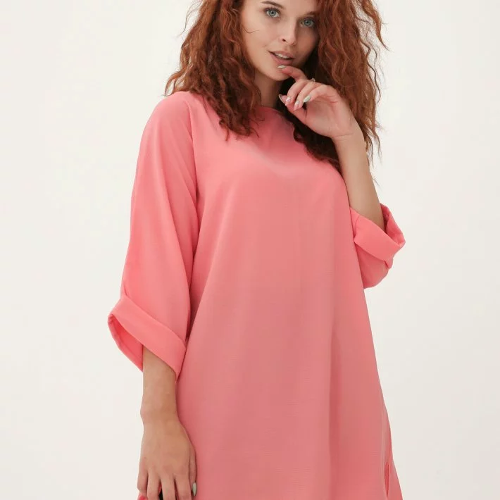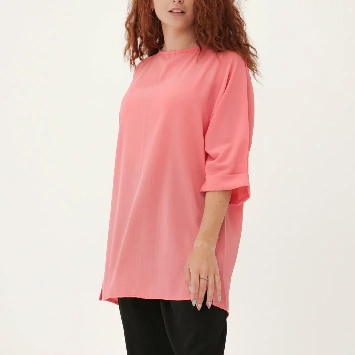 Блуза-туніка з легкого структурного креп-шифону, горловина-човник,