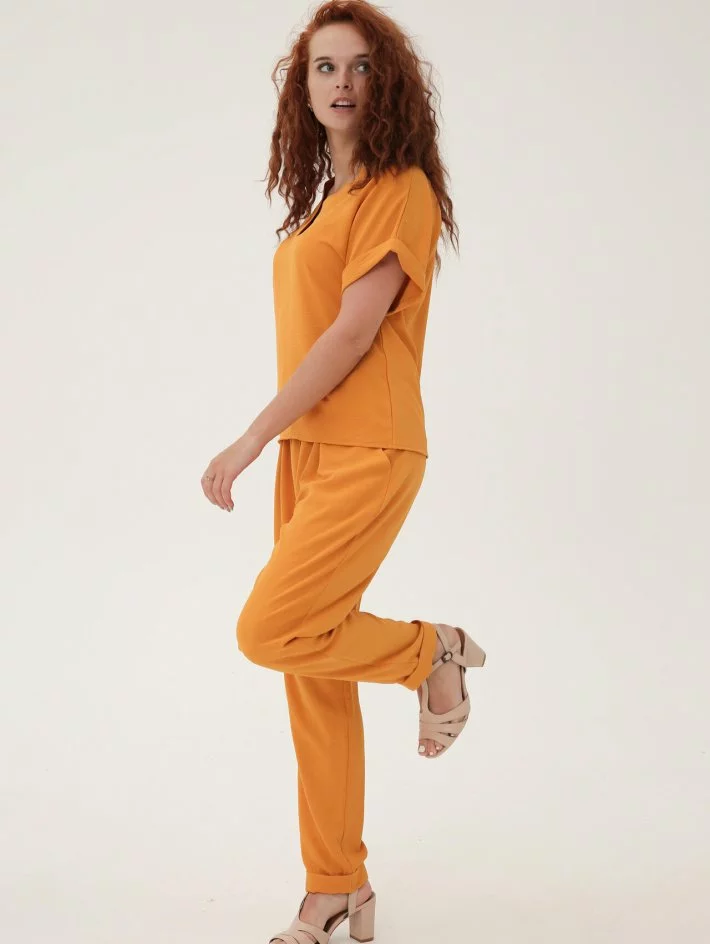 Легкий літній костюм із жниварки. Верх: футболочка без рукавів, з