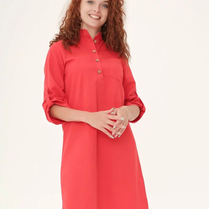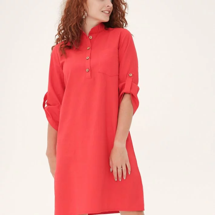 Лляна червона сукня класичного крою 270152-3, 52/54 (270152-3s5254)