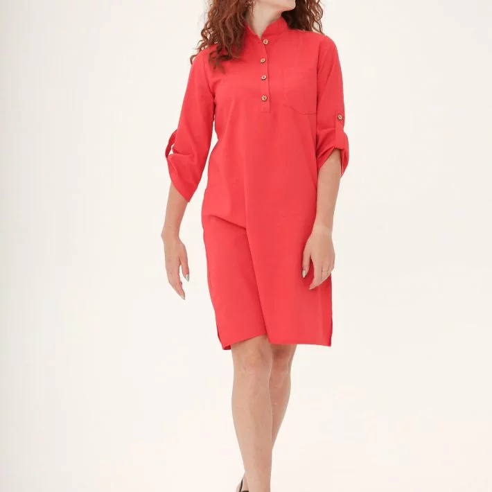 Лляна червона сукня класичного крою 270152-3, 56/58 (270152-3s5658)
