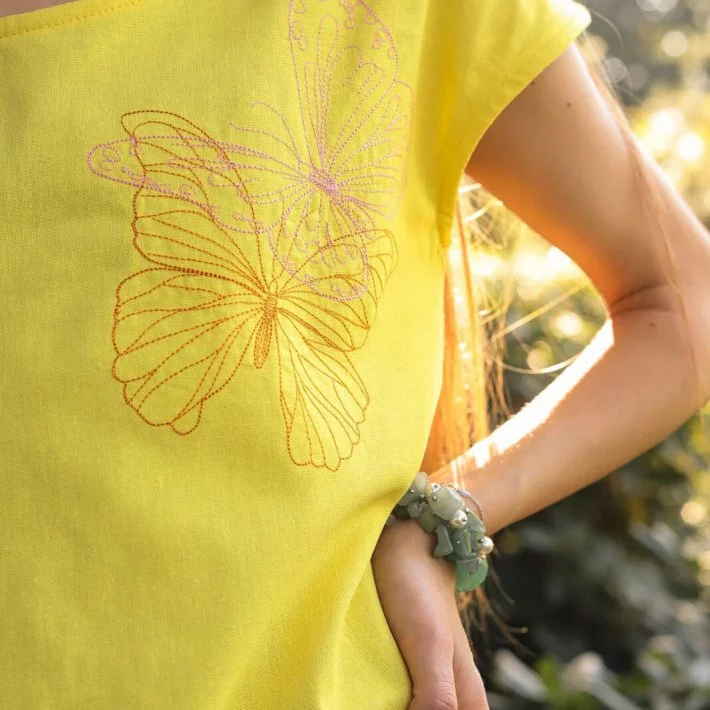 Пряме плаття з льону, з літньої вишивкою "Метелики". Звичайне