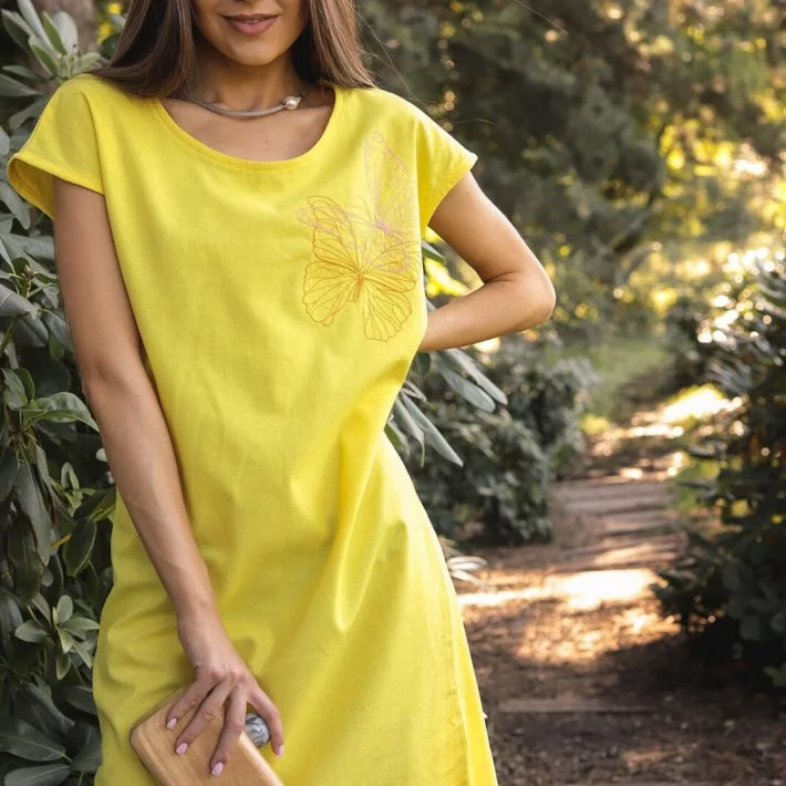 Пряме плаття з льону, з літньої вишивкою "Метелики". Звичайне