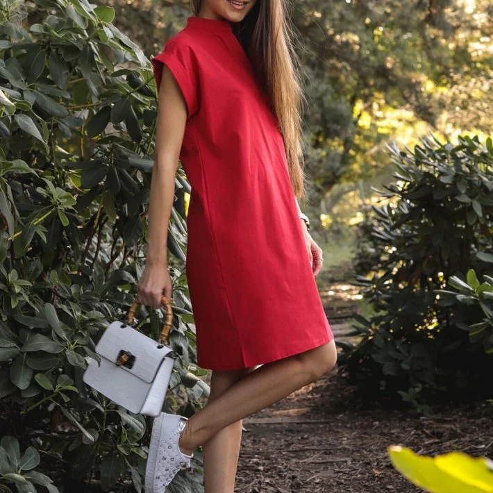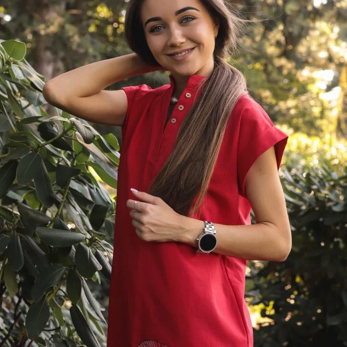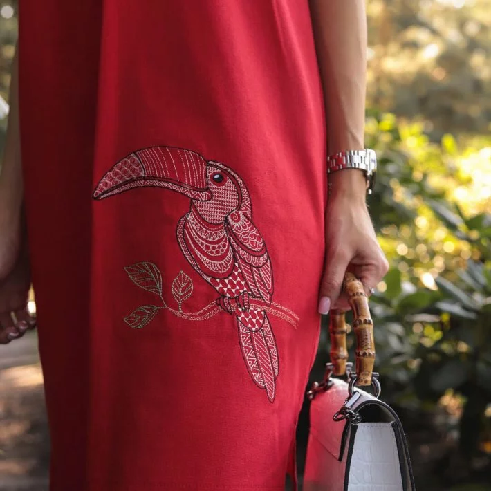 Сукня прямого крою з вишивкою "Тукан" прикрашена декоративними