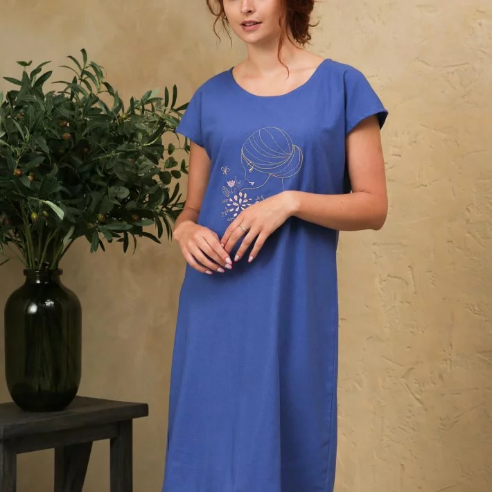Лляна пряма сукня синього 270349-6, 48/50 (270349-6s4850)