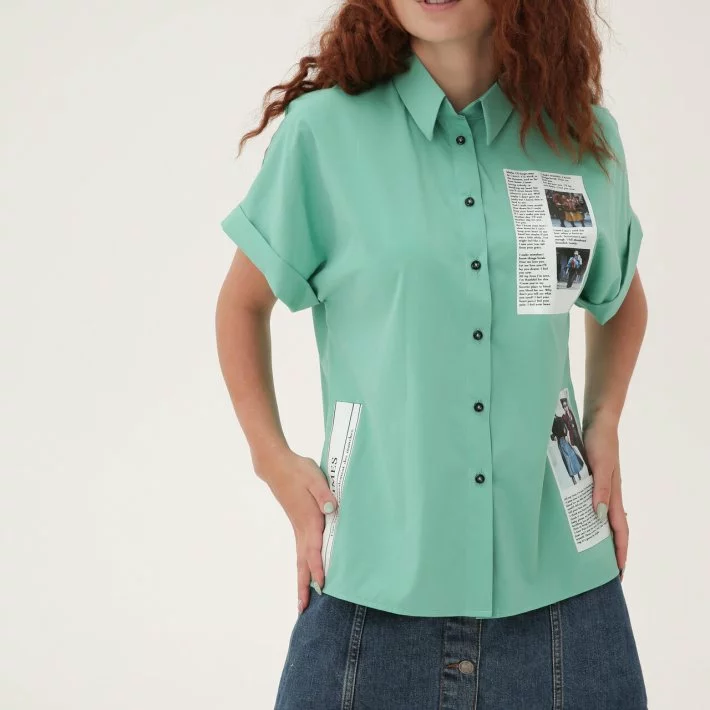 Ментолова сорочка з принтом Модна газетка 230173-2, 52/54 (230173-2s5254)