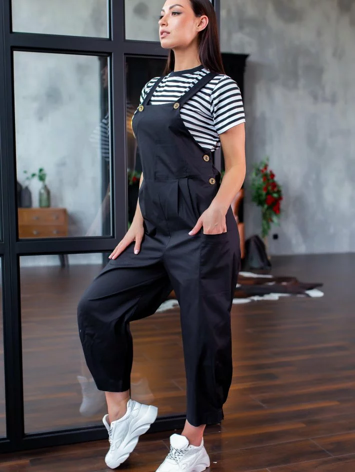 Оригінальний комбінезон у стилі карго з натуральної тканини з