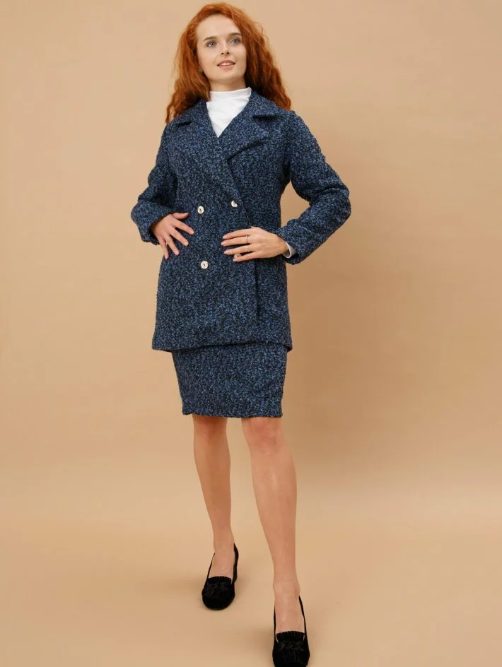 Двобортне пальто - піджак з букльованої вовни з класичним