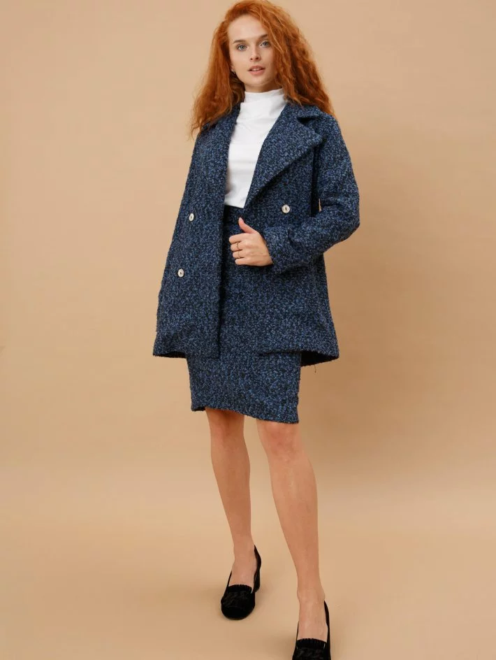 Двобортне пальто - піджак з букльованої вовни з класичним