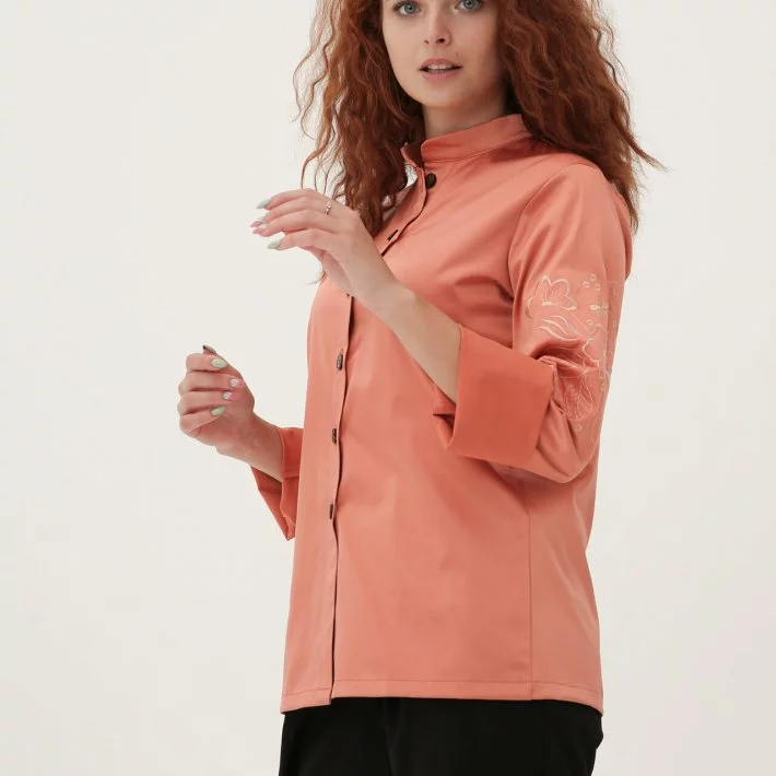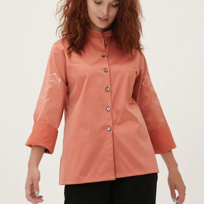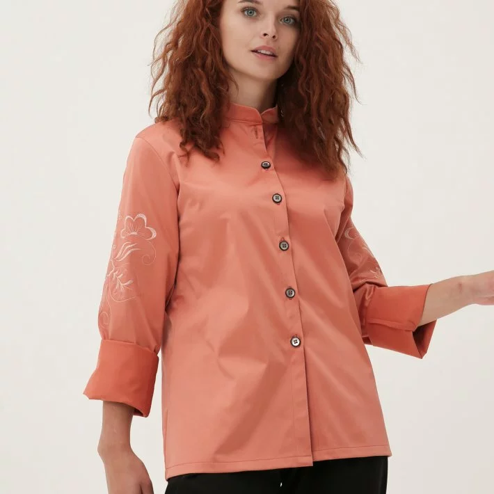 Персиковий піджак-сорочка з вишивкою 230185-1, 44/46 (230185-1s4446)