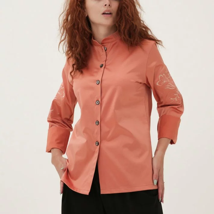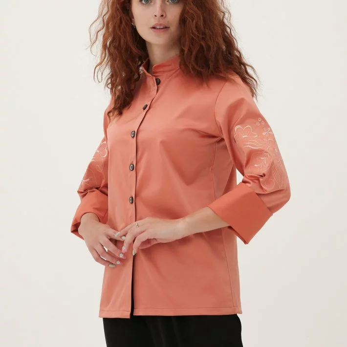 Персиковий піджак-сорочка з вишивкою 230185-1, 48/50 (230185-1s4850)