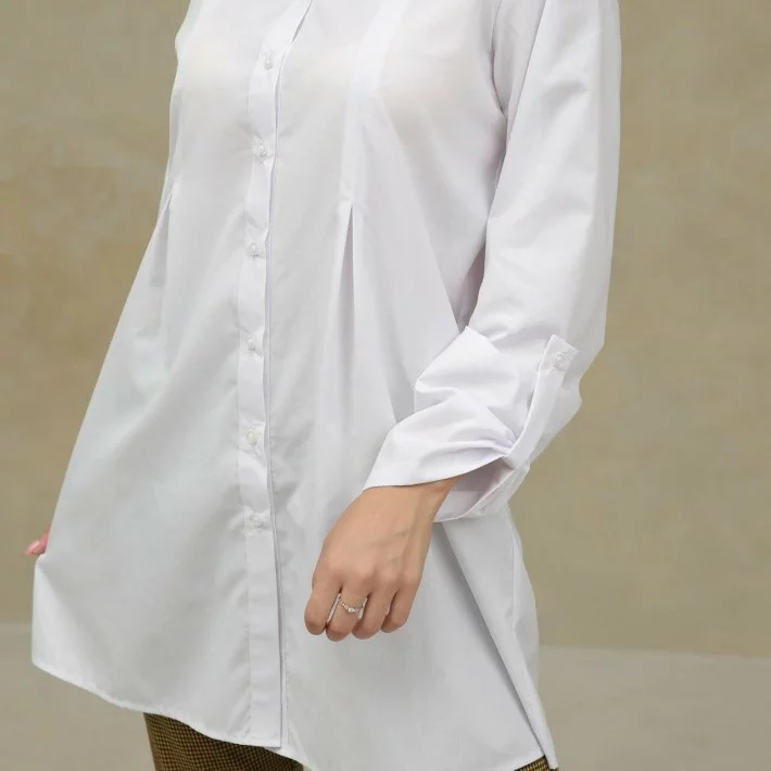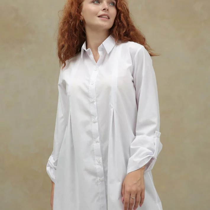 Подовжена біла сорочка з складками 230196-1, 48 (230196-1s48)