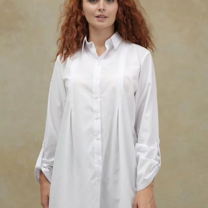Подовжена біла сорочка з складками 230196-1, 54 (230196-1s54)