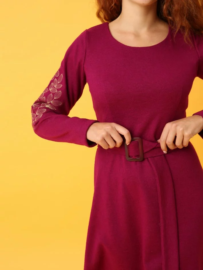 Приталена сукня з в'яленої вовни з круглою горловиною і вишивкою на