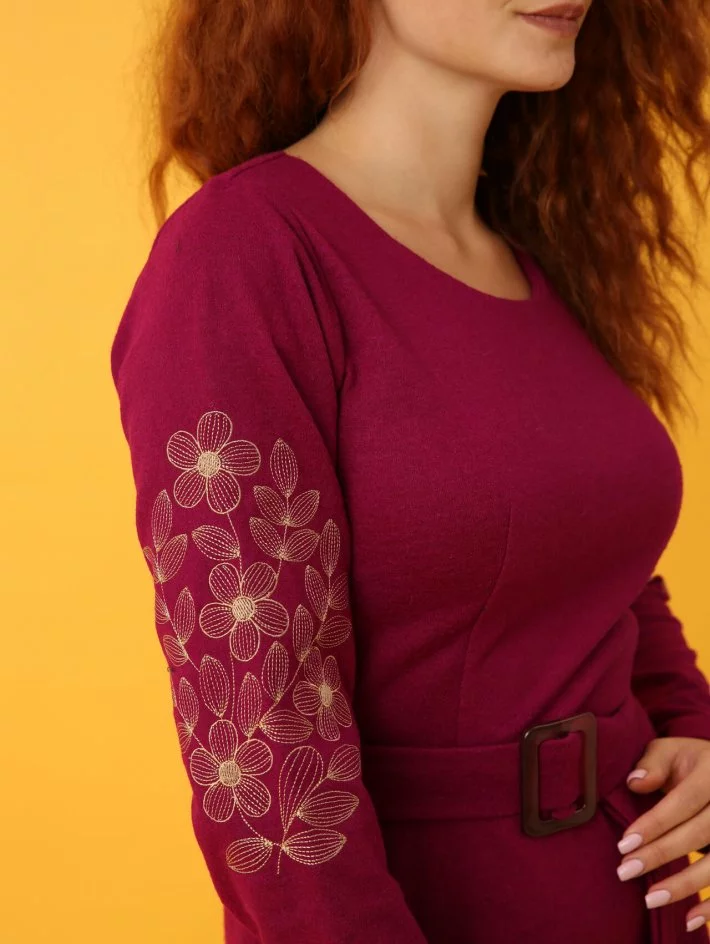 Приталена сукня з в'яленої вовни з круглою горловиною і вишивкою на
