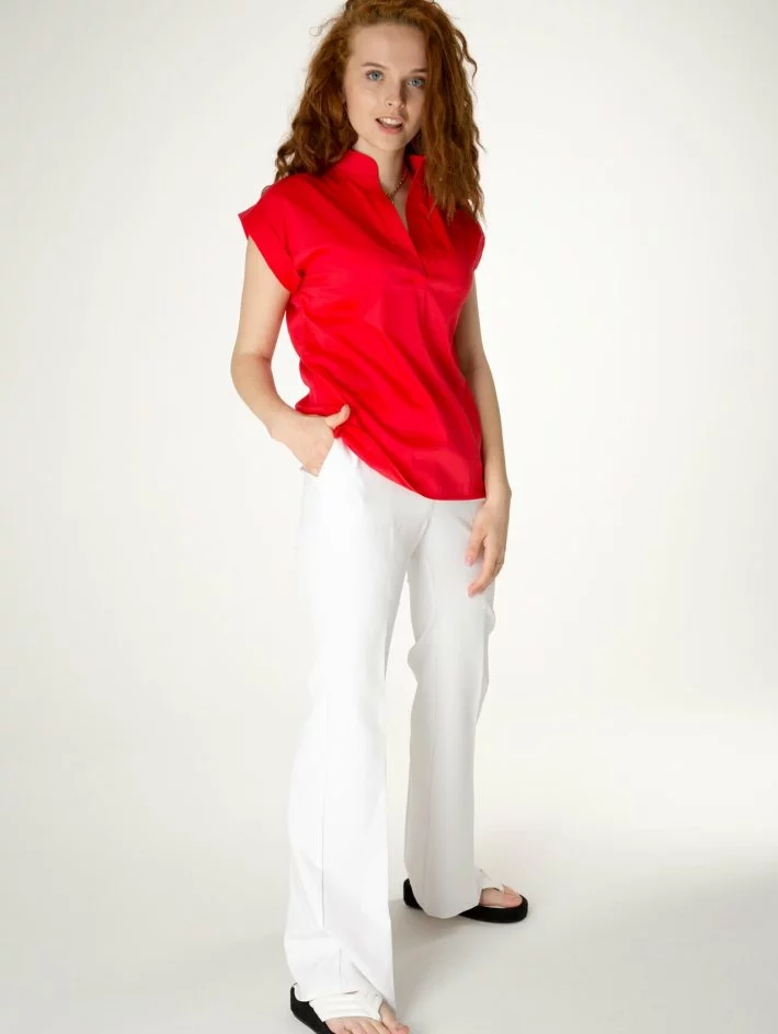 Пряма легка блузка з відкритою горловиною без застібок. Ми радимо