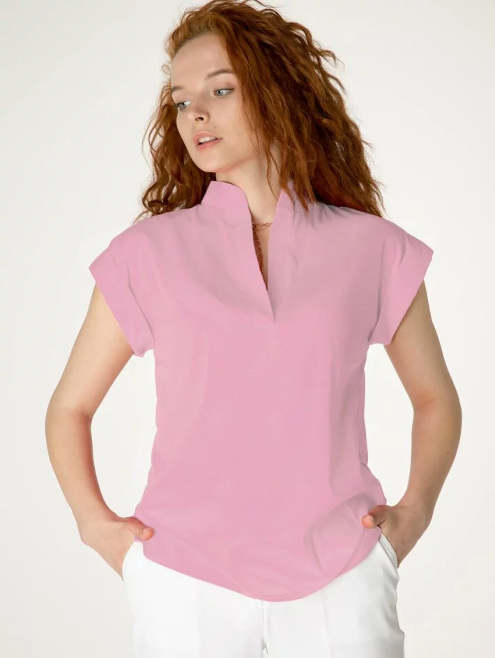 Блузка з полірованої бавовни. З відкритою горловиною на стійці та