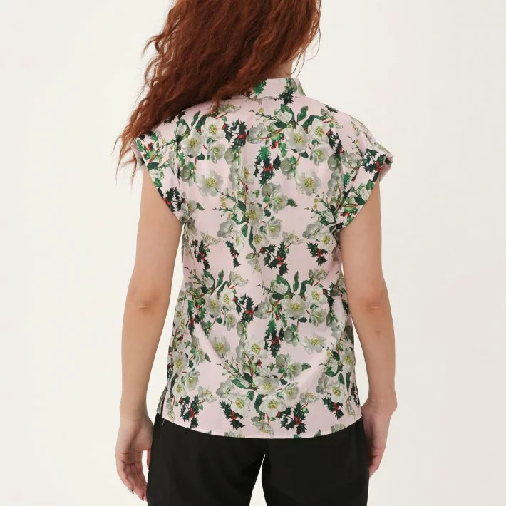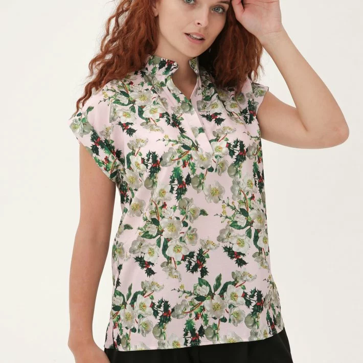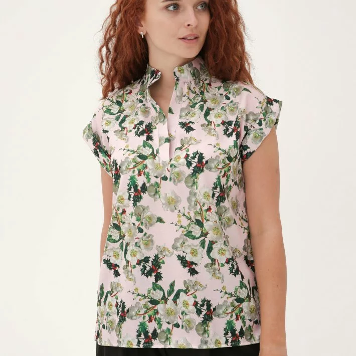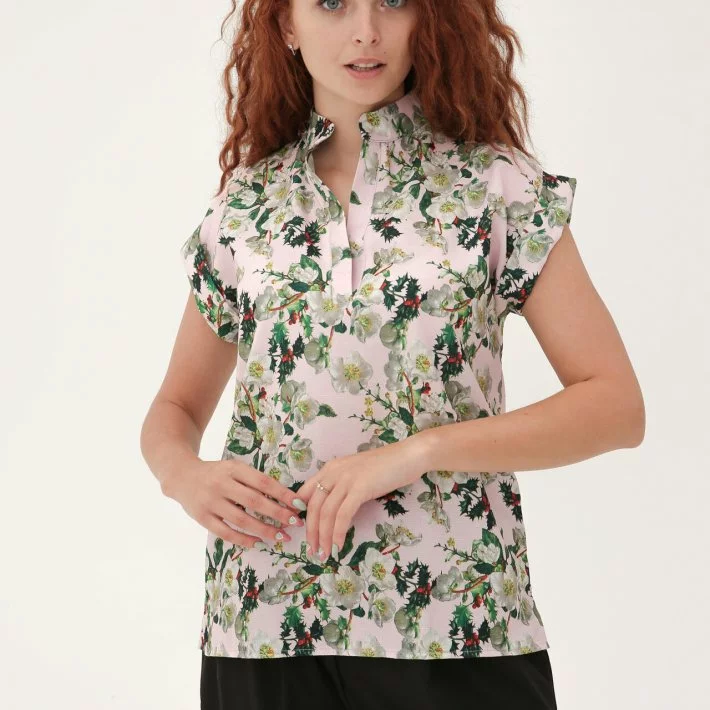 Пряма легка блузка з ненав'язливим принтом і відкритою горловиною