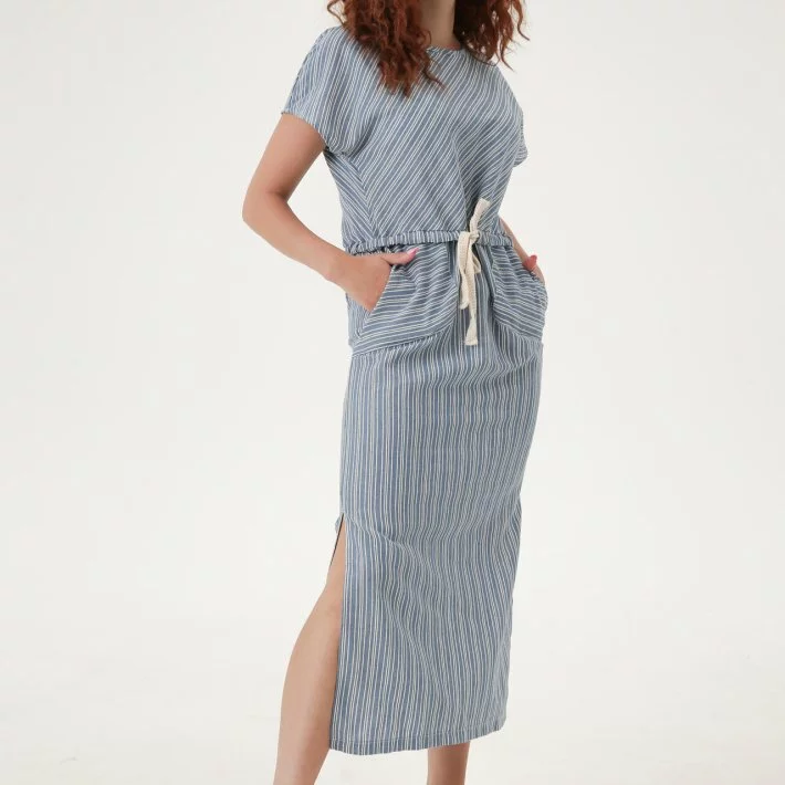 Пряма довга лляна сукня в смужку 270346, 48/50 (270346s4850)
