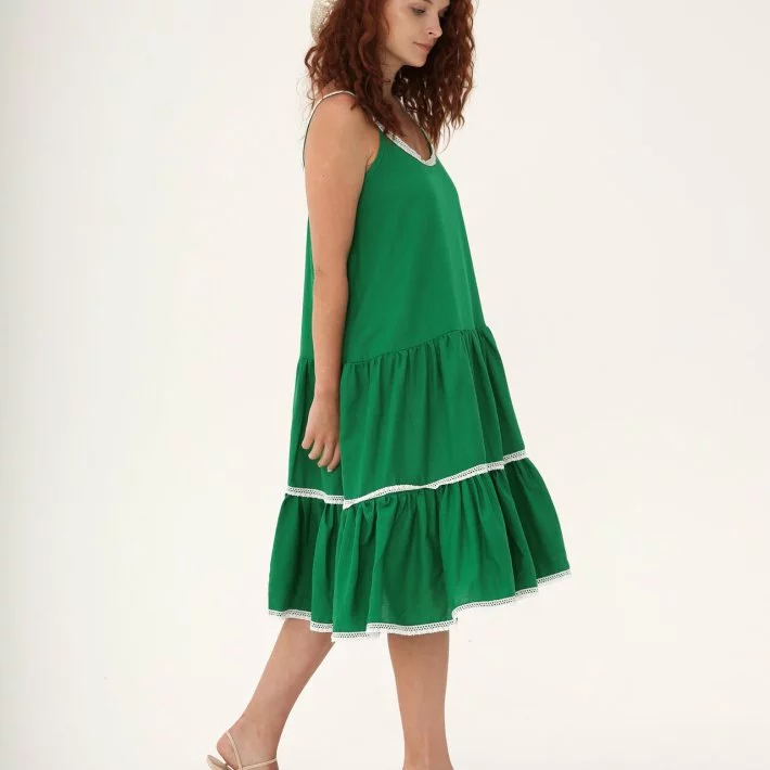 Зручне плаття з натурального льону, з воланом - сонцем, декороване