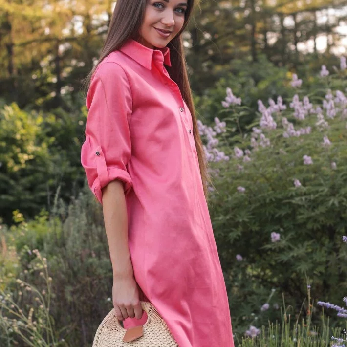 Рожева сукня-сорочка класичного крою 2701104-2, 44/46 (2701104-2s4446)