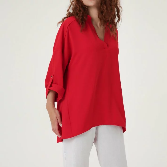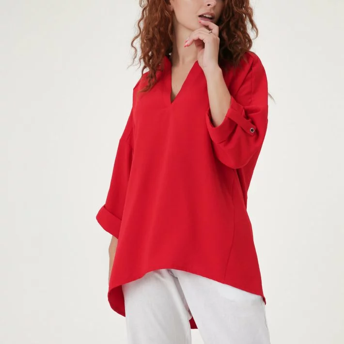 Червона сорочка з легкої віскозної жатки 230175-1, 44/46 (230175-1s4446)