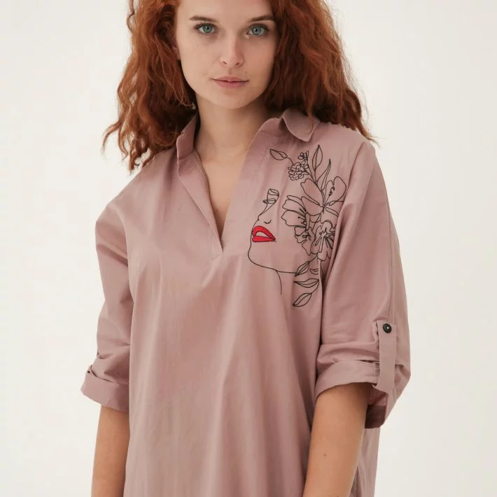 Сорочка-туніка оверсайз крою, декорована попереду вишивкою. При