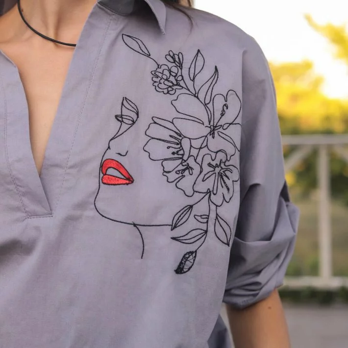 Сорочка-туніка оверсайз крою, оздоблена вишивкою. При пранні не дає