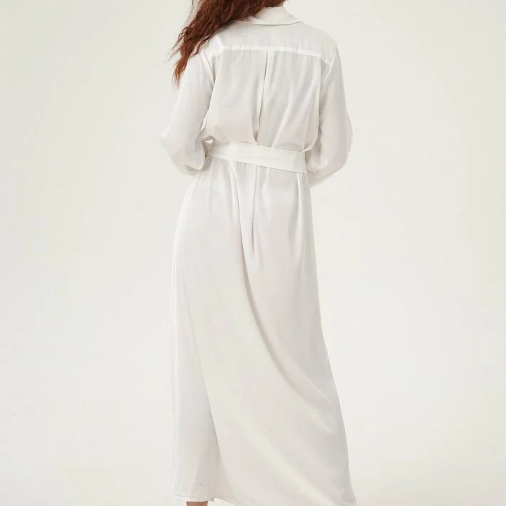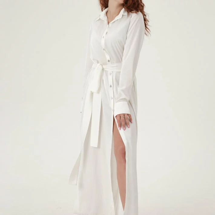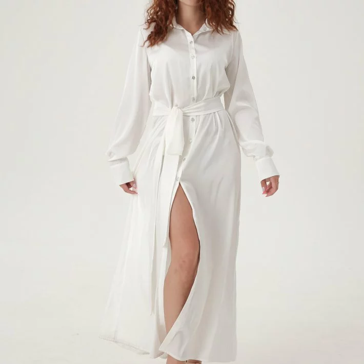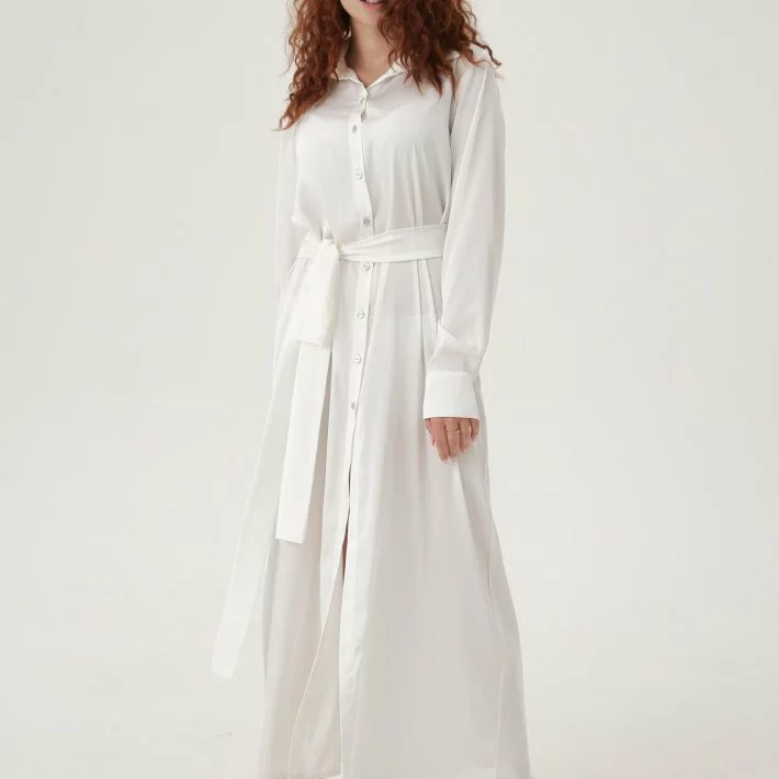 Довга сукня-сорочка з шовку, застібка спереду на гудзики, широкий