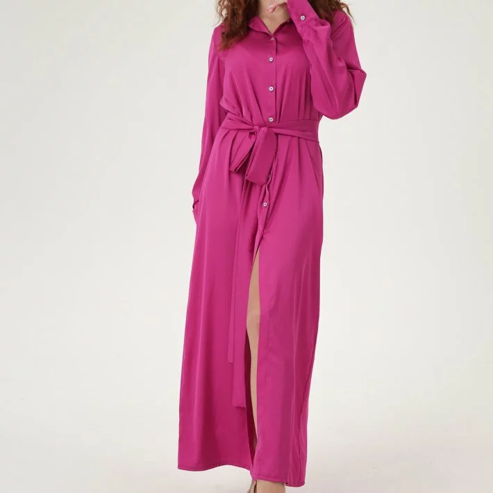 Довга сукня-сорочка з шовку, застібка спереду на гудзики, широкий