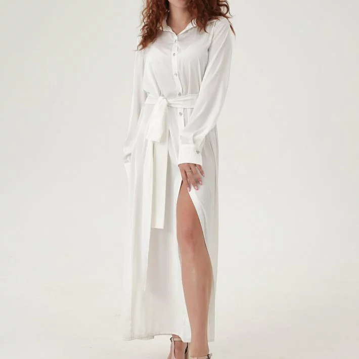 Довга сукня-сорочка з шовку, застібка спереду на гудзики, широкий