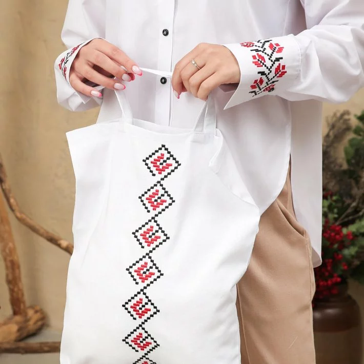 Шопер декорований класичним українським орнаментом, який символізує