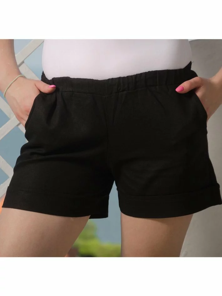 Шорти з натуральної лляної тканини з кишенями збоку та гумкою
