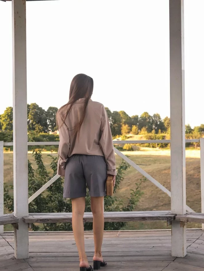 Шорти прямого крою на середній посадці з кишенями у бокових швах. У
