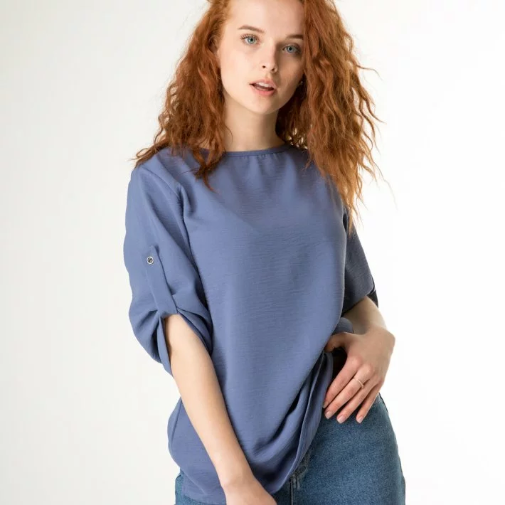 Синя базова блузка з жатки 230147-2, 60/62 (230147-2)