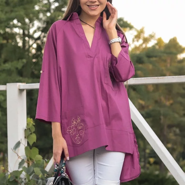 Сливова сорочка-туніка з вишивкою 230131, 48/50 (230131s4850)