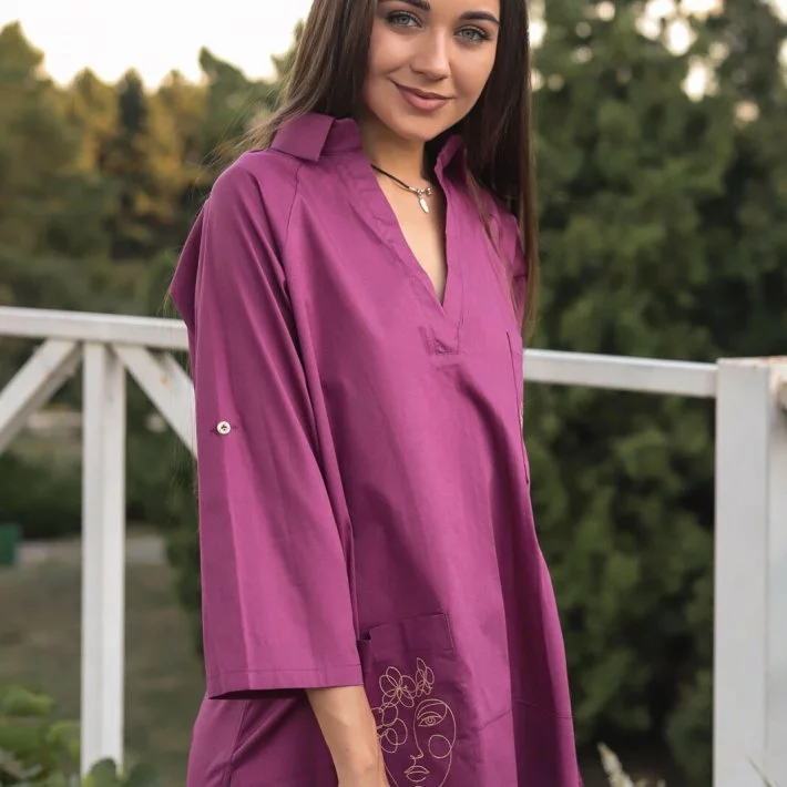 Сливова сорочка-туніка з вишивкою 230131, 52/54 (230131s5254)