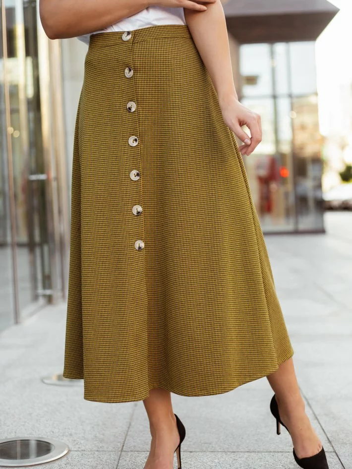 Модна цього сезону Спідниця - трапеція з гарними гудзиками спереду,