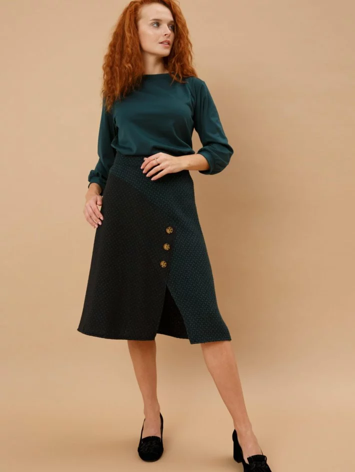 асиметрична деталь прикрашена декоративними ґудзиками. Спідниця