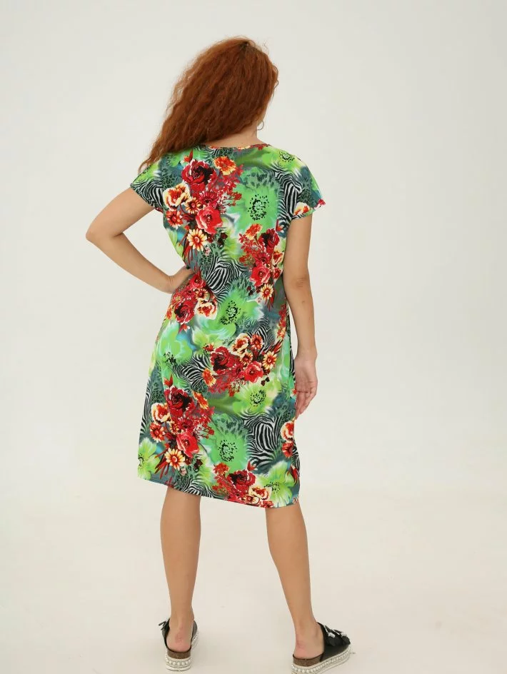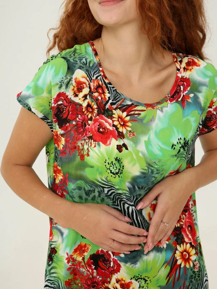 Сукня – футболка прямого крою, виготовлена з бавовняного штапелю.