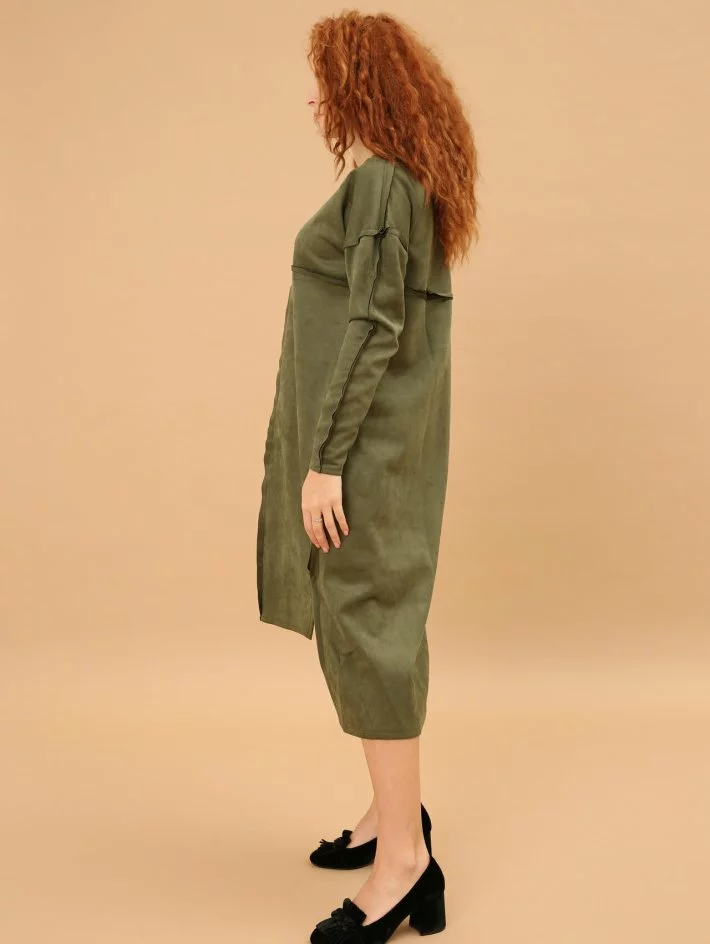 Сукня довжини міді з замшевої тканини. Тканина трохи тягнеться,