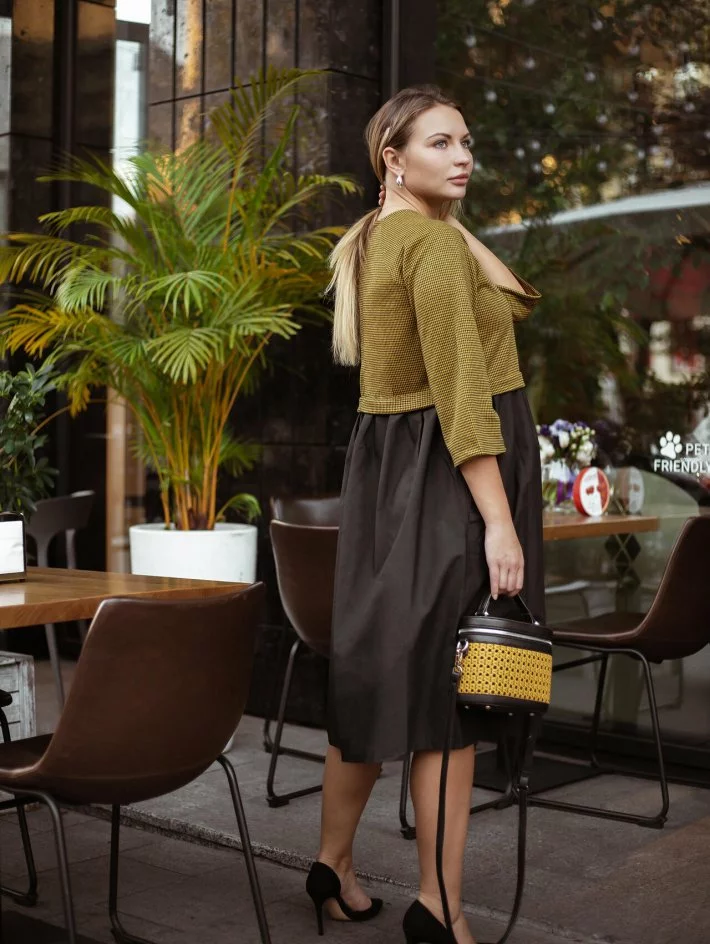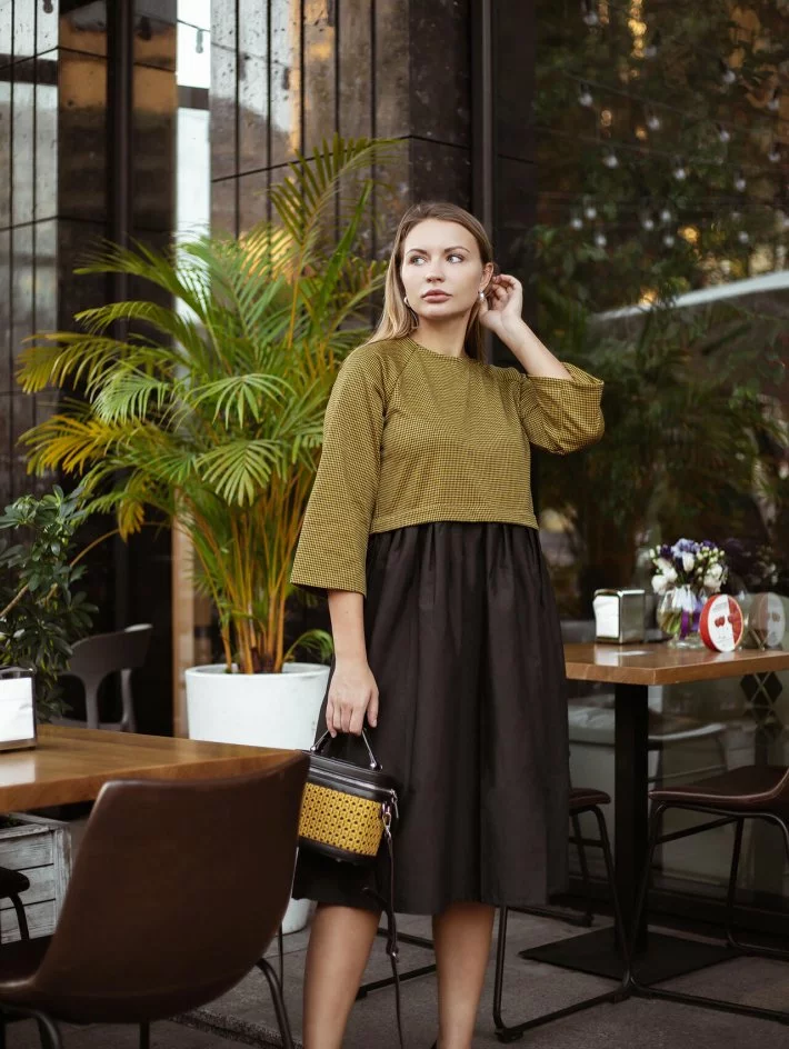 Сукня класичного стилю комбінована з двох тканин. У вільній