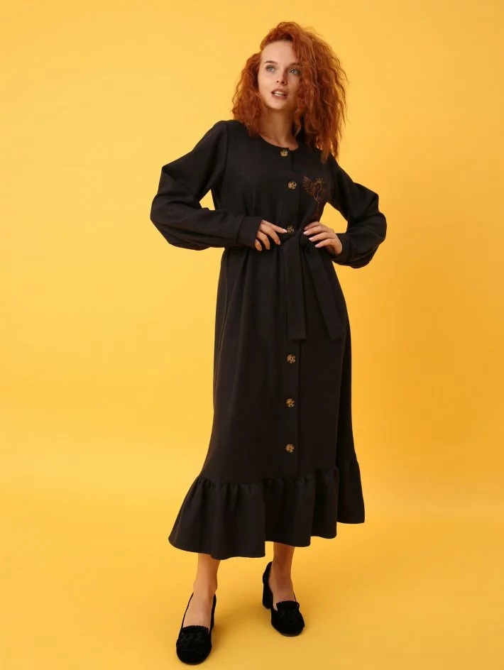 вишивкою "Жар птиця" і має пояс в комплекті. Довгий рукав на