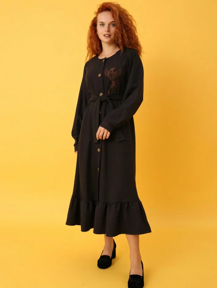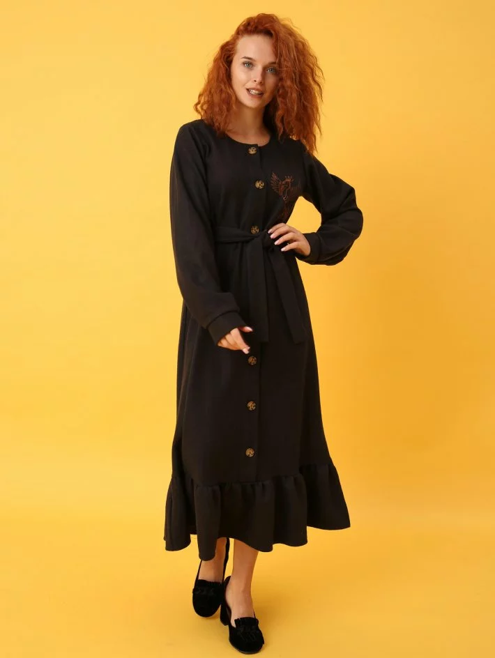 вишивкою "Жар птиця" і має пояс в комплекті. Довгий рукав на