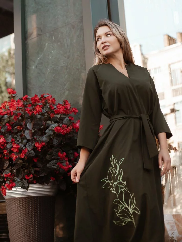 "Лілії" в тон сукні. Пояс входить до комплекту.
