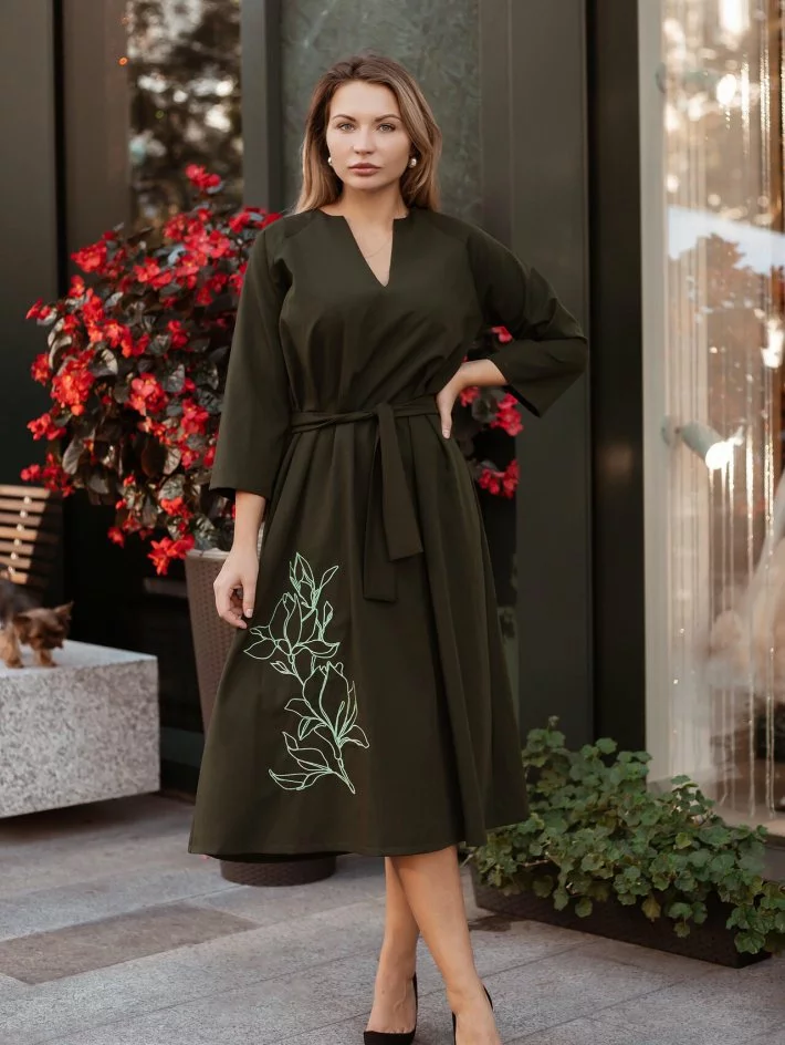 Шикарна сукня довжини міді з вільним рукавом 3/4 та акуратною